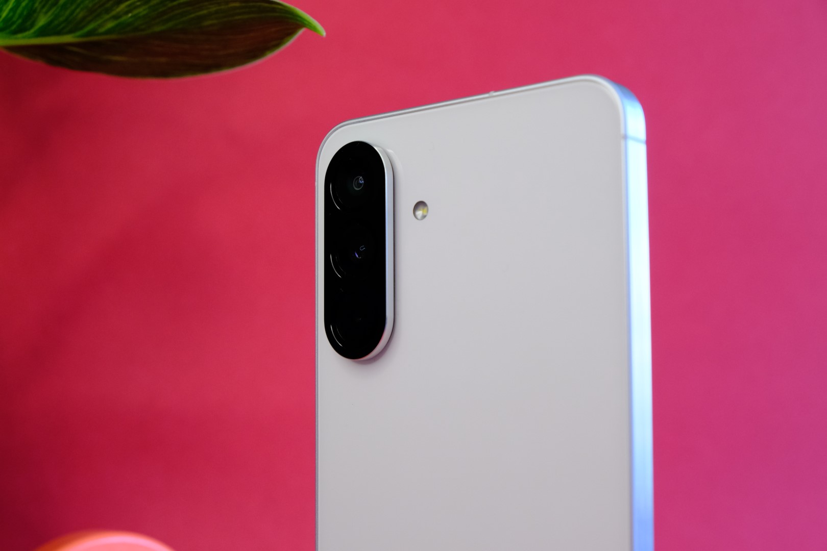Multe lucruri nu s-au schimbat față de modelul anterior în ceea ce privește aspectul lui A56. Rama plată, muchiile ascuțite, colțurile rotunjite, poziționarea butoanelor și a portului USB-C au rămas neschimbate. O diferență notabilă este prezentă în zona camerelor. Cele trei lentile sunt acum protejate de un singur element și nu mai au zone de design individuale precum A55.