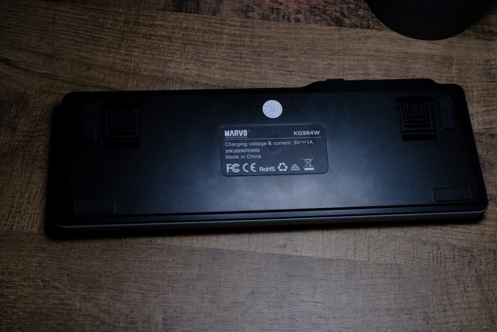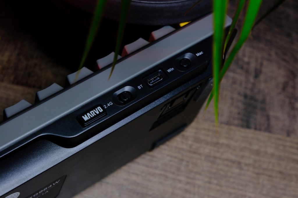 Un detaliu extrem de important este compatibilitatea nativă cu Mac și (evident) Windows. Pe spatele tastaturii există un comutator dedicat Mac / Win, care schimbă layout-ul tastelor (Command / Option vs Alt / Windows). Este genul de detaliu mic, dar care adaugă enorm la experiență, mai ales dacă ești utilizator de laptop Apple și un PC cu Windows în paralel.