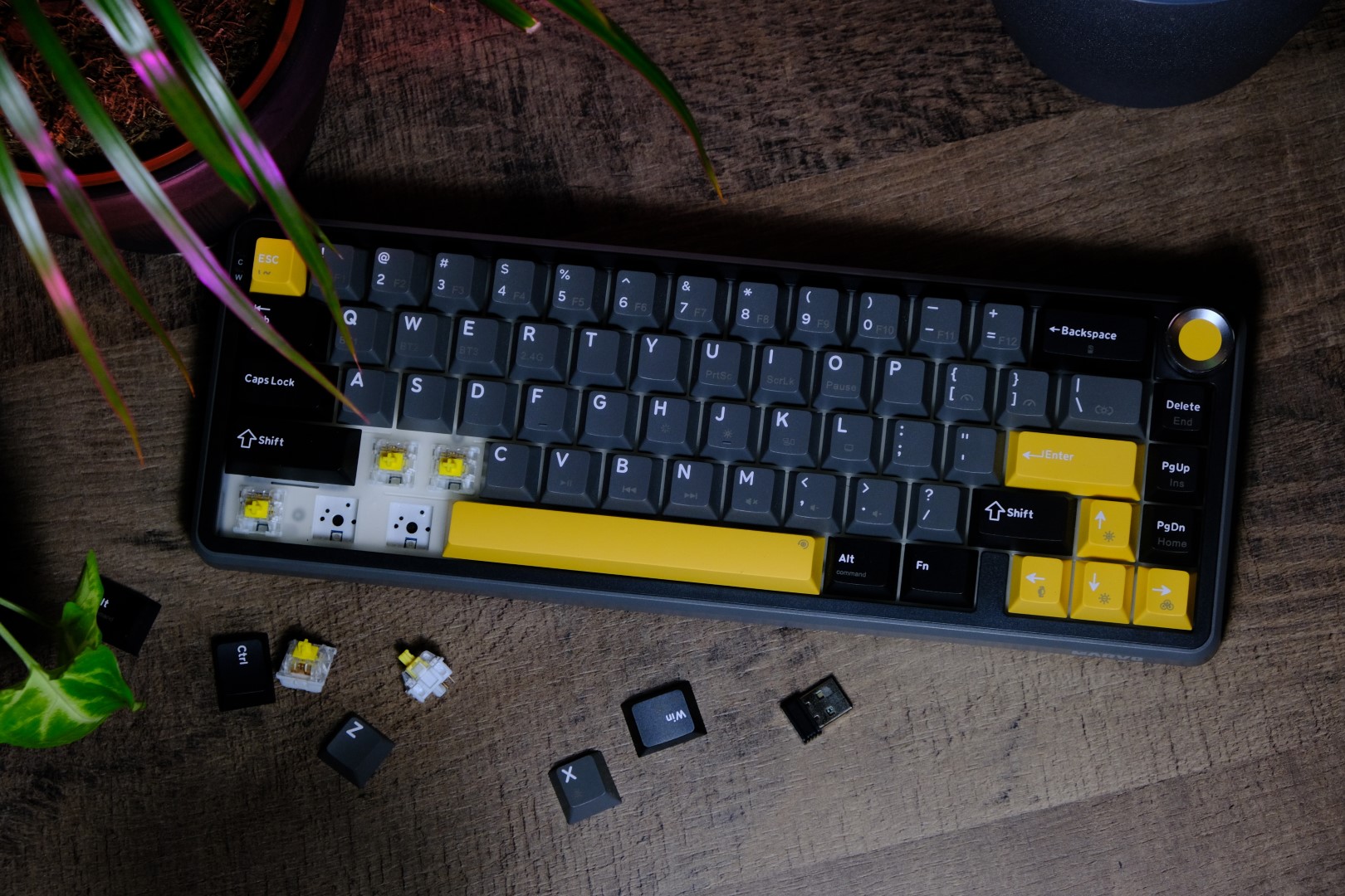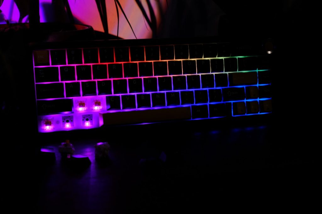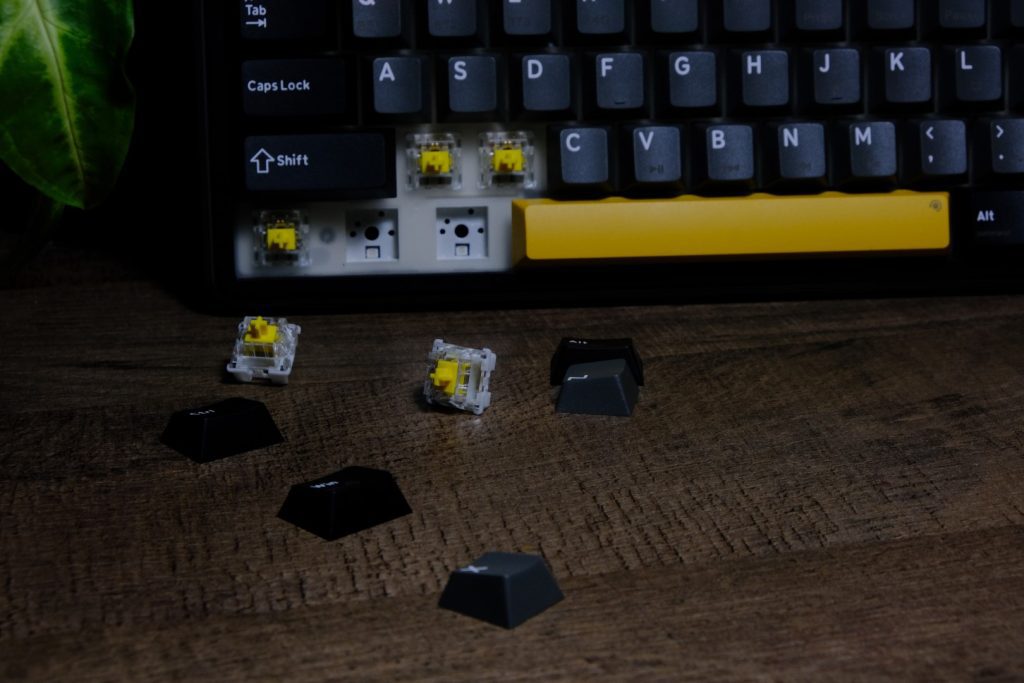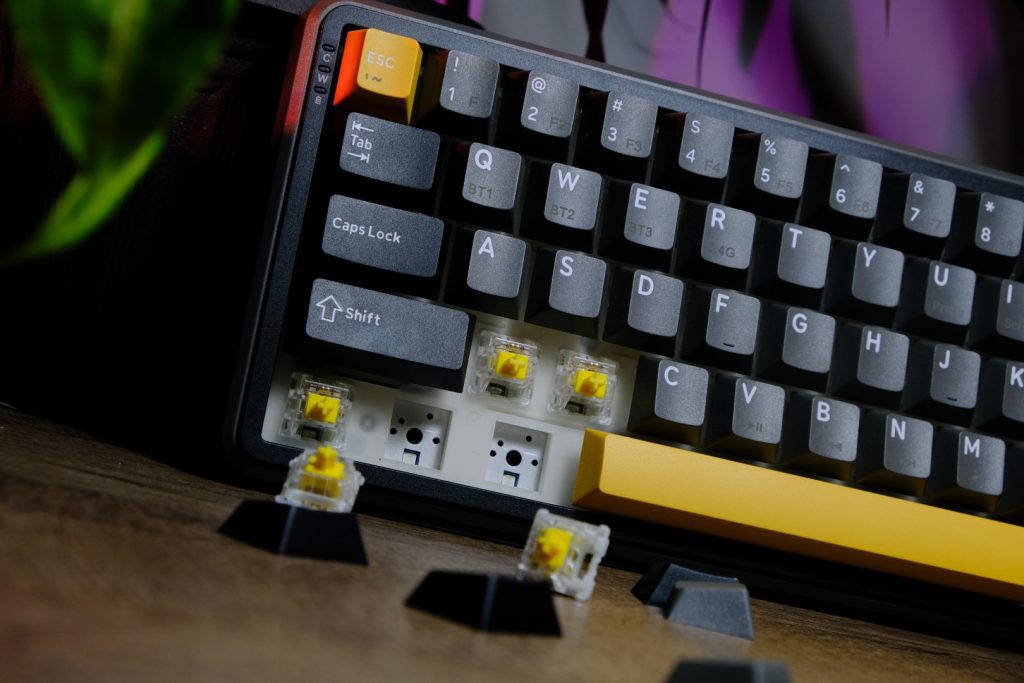 Un mare plus este modalitatea de montare hot-swap a butoanelor. La nevoie, poți „tuna” tastatura cu alte switch-uri, sau poți face alte combinații. De exemplu, am o tastatură căreia i-am montat pe tastele ESC, DEL, ENTER și SPACE niște switch-uri tactile, cu o forță de apăsare mai mare. Am făcut acest lucru pentru a avea o experiență mai personală. Dacă apăs esc, apăs esc cu sete, iar dacă apăs enter, vreau să știu ca mesajul a fost trimis.